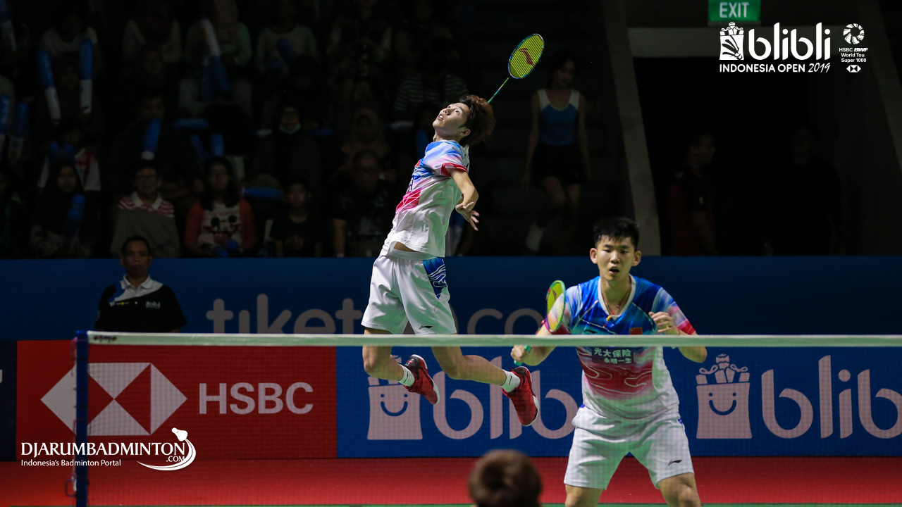 LI Jun Hui, LIU Yu Chen (China) melakukan serangan