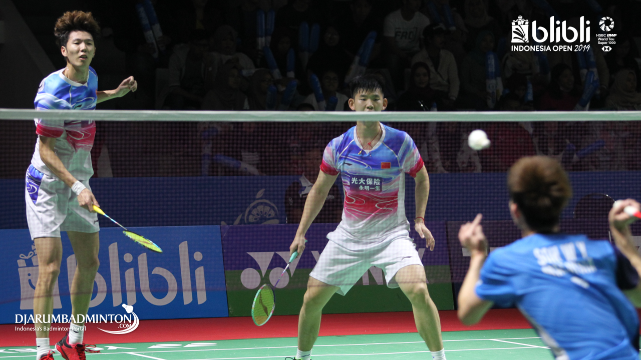 LI Jun Hui, LIU Yu Chen (China) melakukan serangan