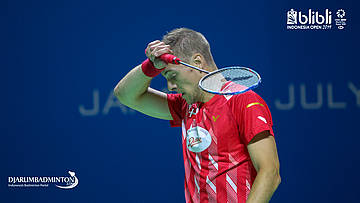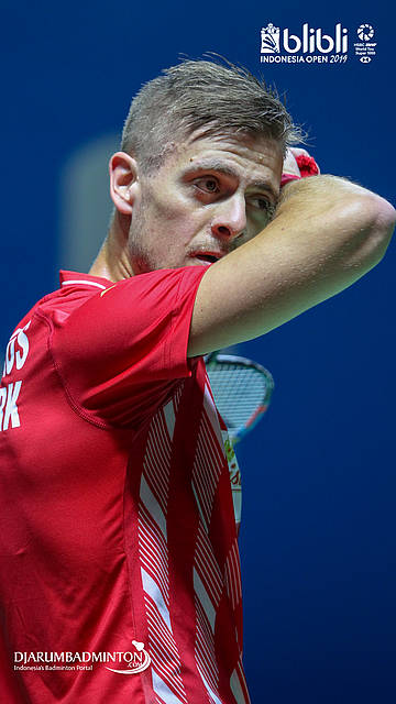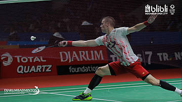 Hans-Kristian Solberg VITTINGHUS (Denmark) menyambut shuttlecock