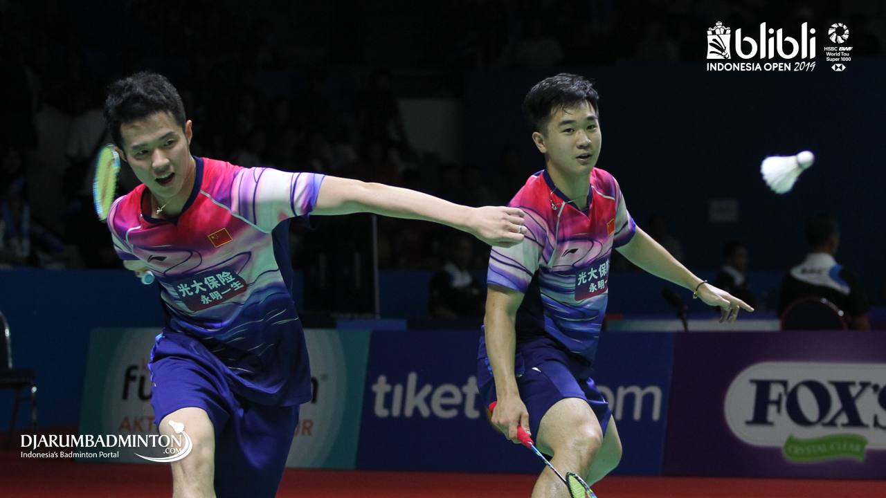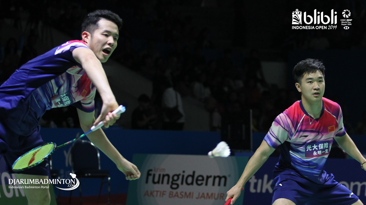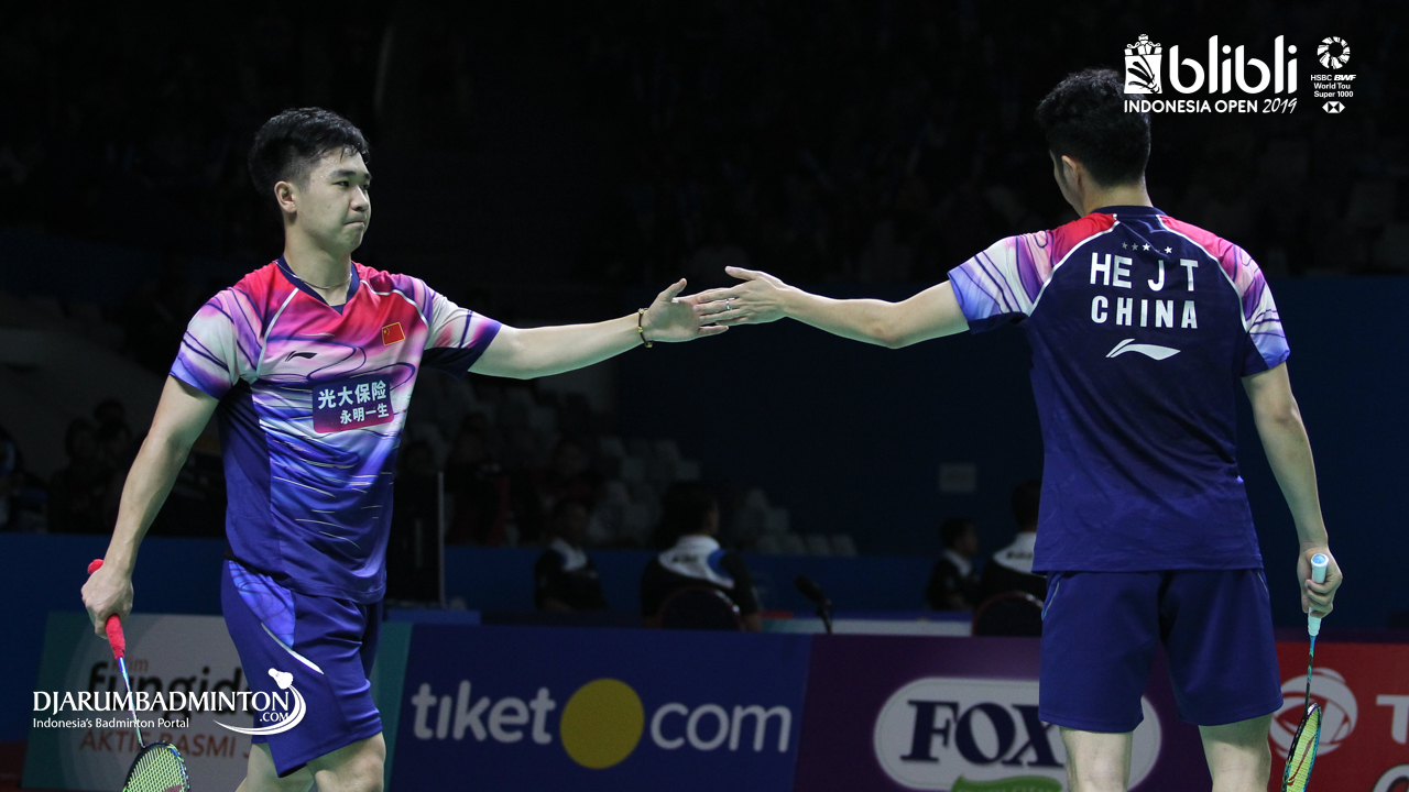 HE Ji Ting, TAN Qiang (China) mengembalikan serangan