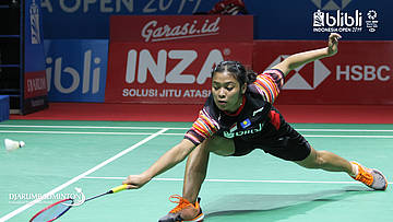 Gregoria Mariska TUNJUNG (Indonesia) mengembalikan serangan