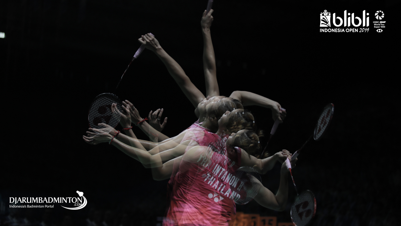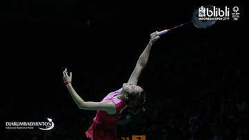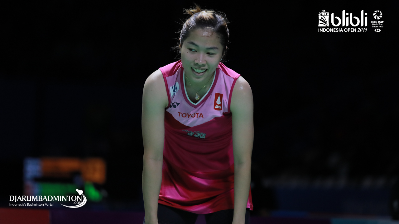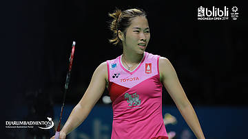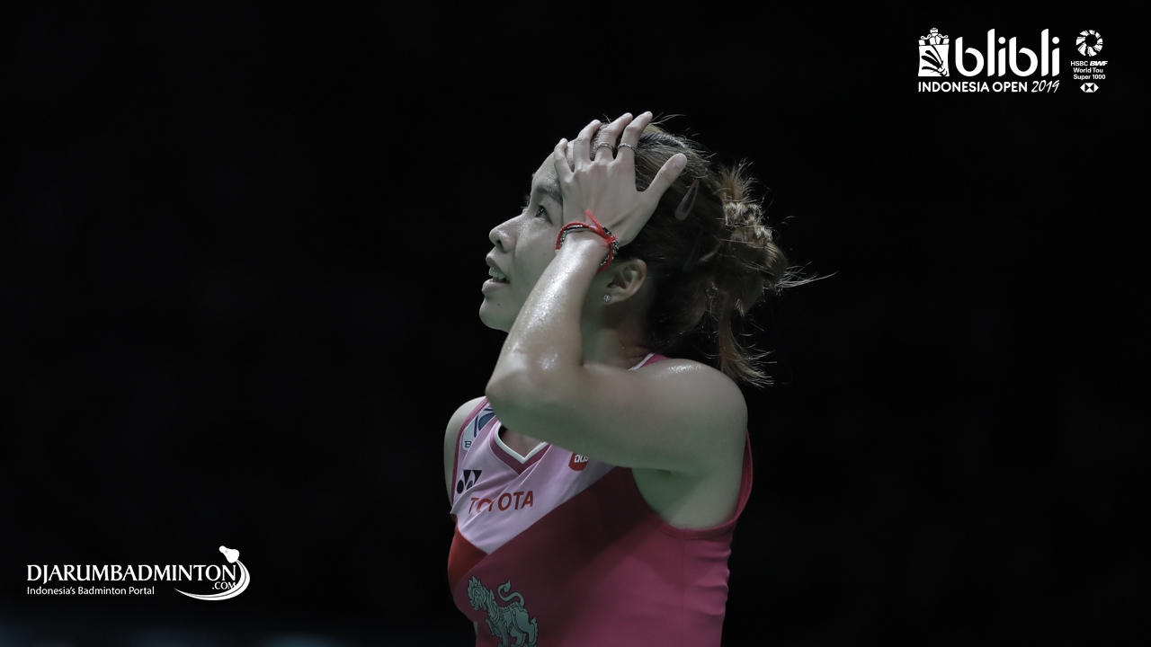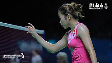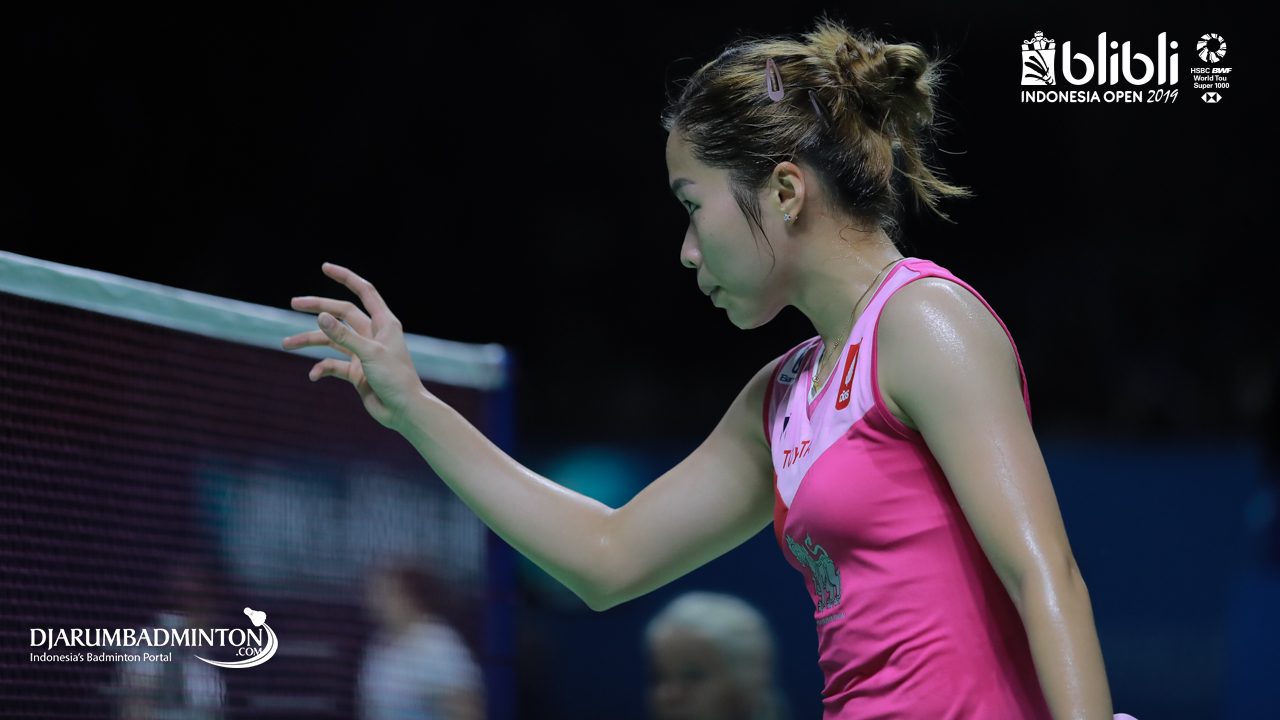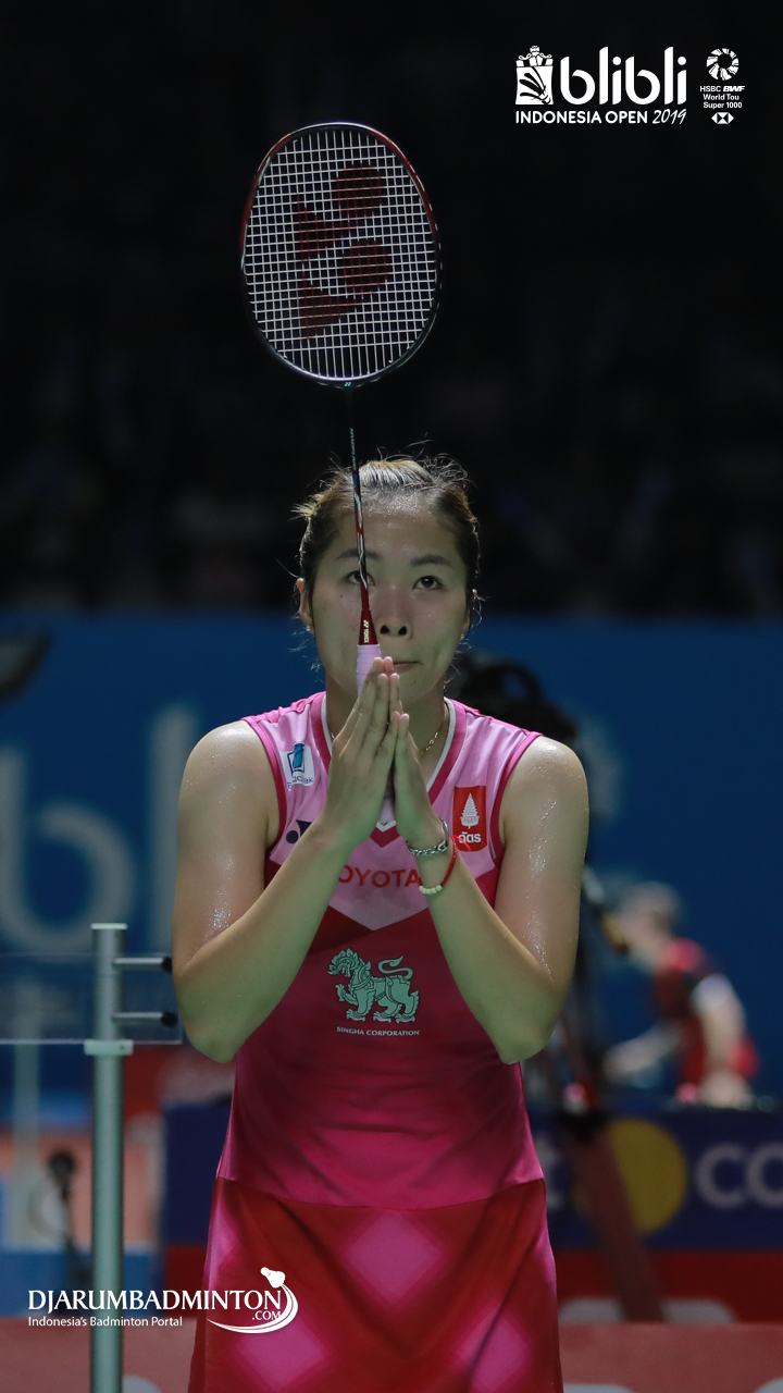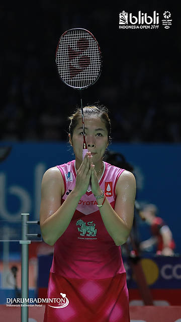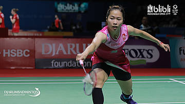 Ratchanok INTANON (Thailand) menggapai shuttlecock