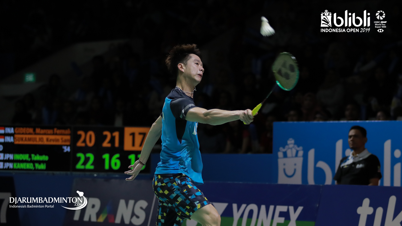 Marcus Fernaldi GIDEON (Indonesia) mengembalikan serangan
