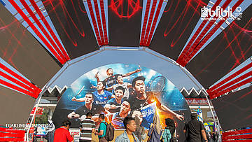Para fans menyambut kedatangan atlet