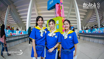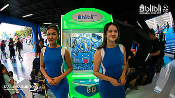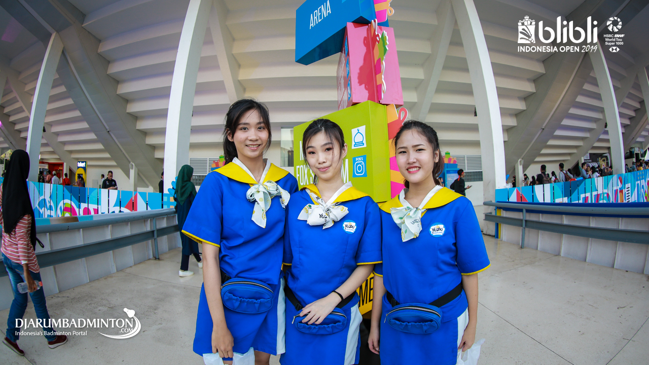 Salah satu Usher sedang menunjukan Touchsceen Information yang ada di Blibli Indonesia Open 2019