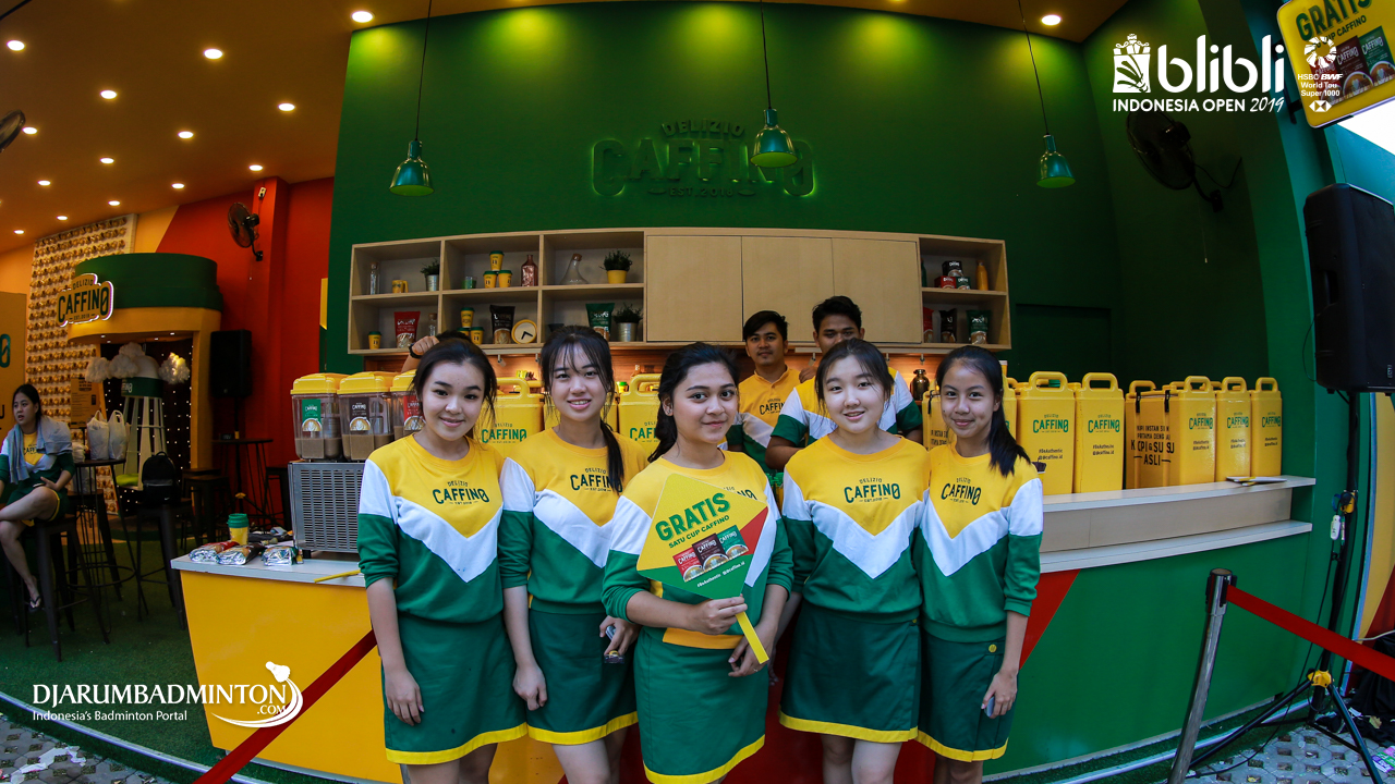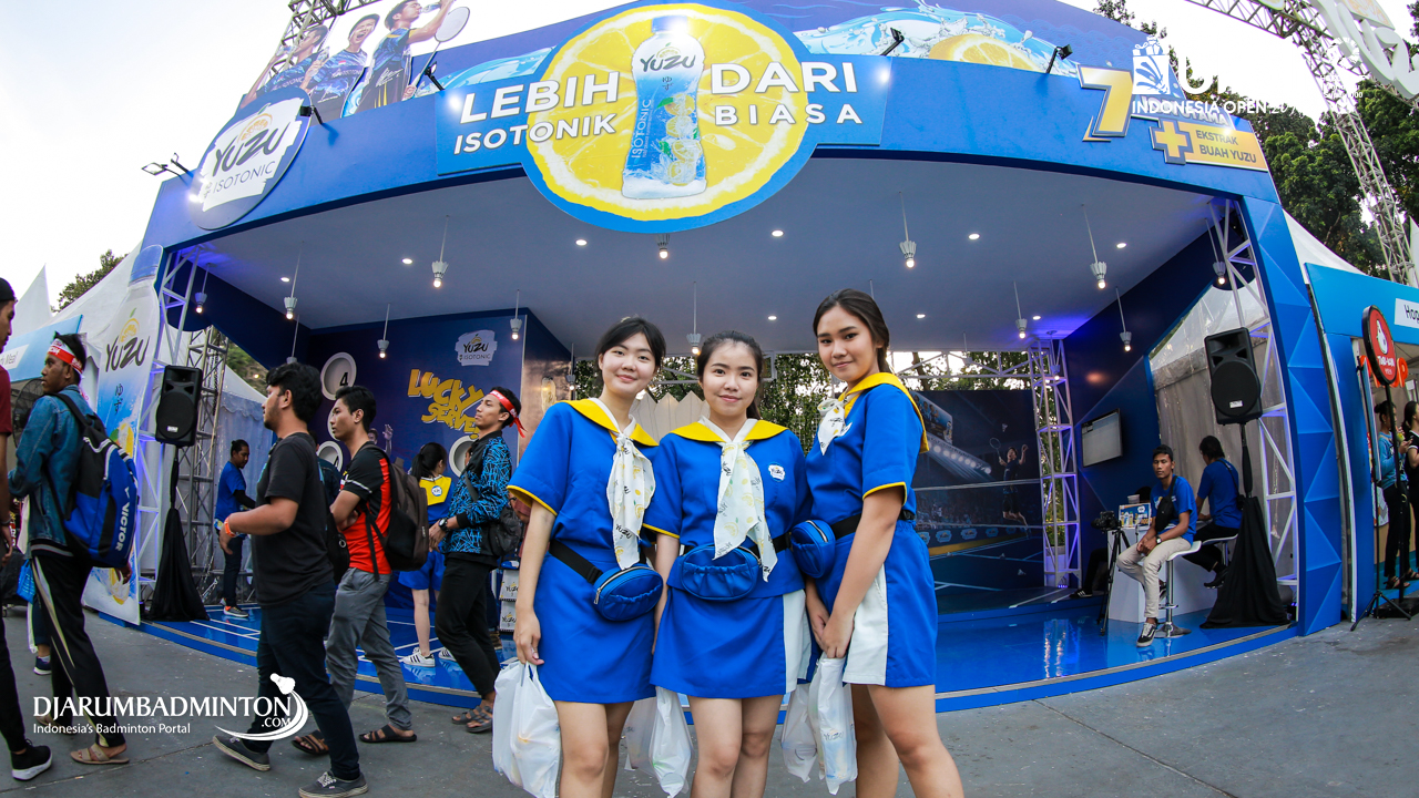 Dua Usher sedang berpose di acara Blibli Indonesia Open 2019