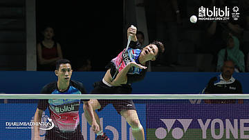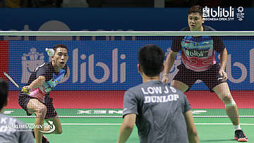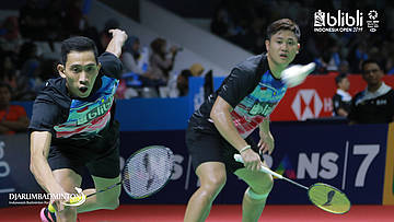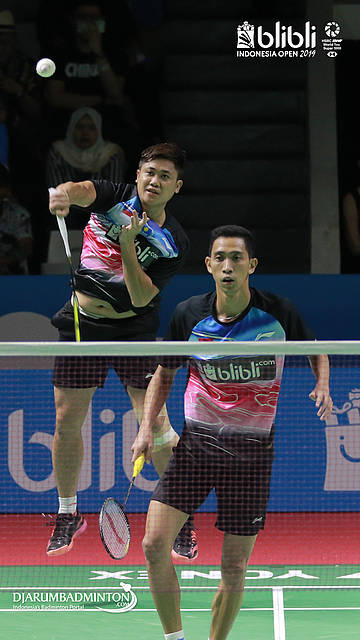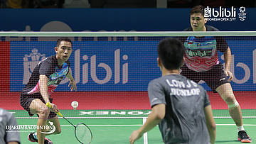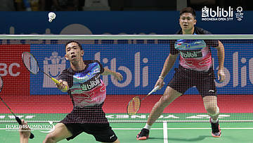 Wahyu Nayaka ARYA PANGKARYANIRA/Ade Yusuf SANTOSO (Indonesia) menerima shuttlecock