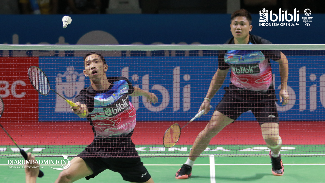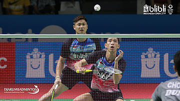 Wahyu Nayaka ARYA PANGKARYANIRA/Ade Yusuf SANTOSO (Indonesia) mengembalikan serangan