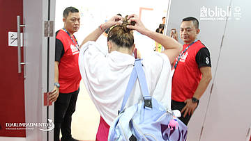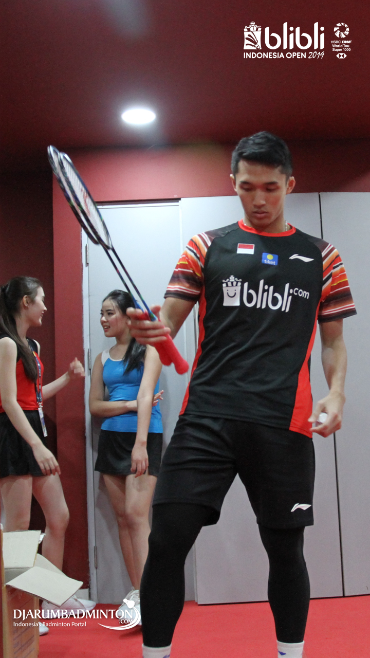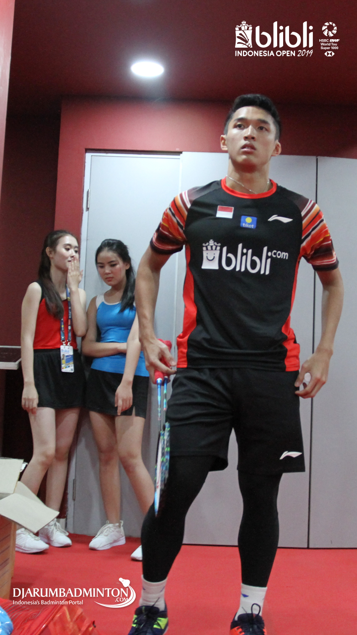 Jonatan Christie sebelum masuk ke arena pertandingan