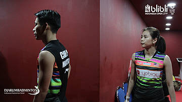 Goh Liu Ying dan Chan Peng Soon (MAS) sebelum masuk ke arena pertandingan