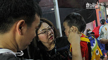 Hendra Setiawan bersama anak-anaknya di Warming Up Hall