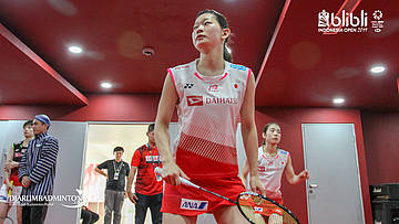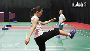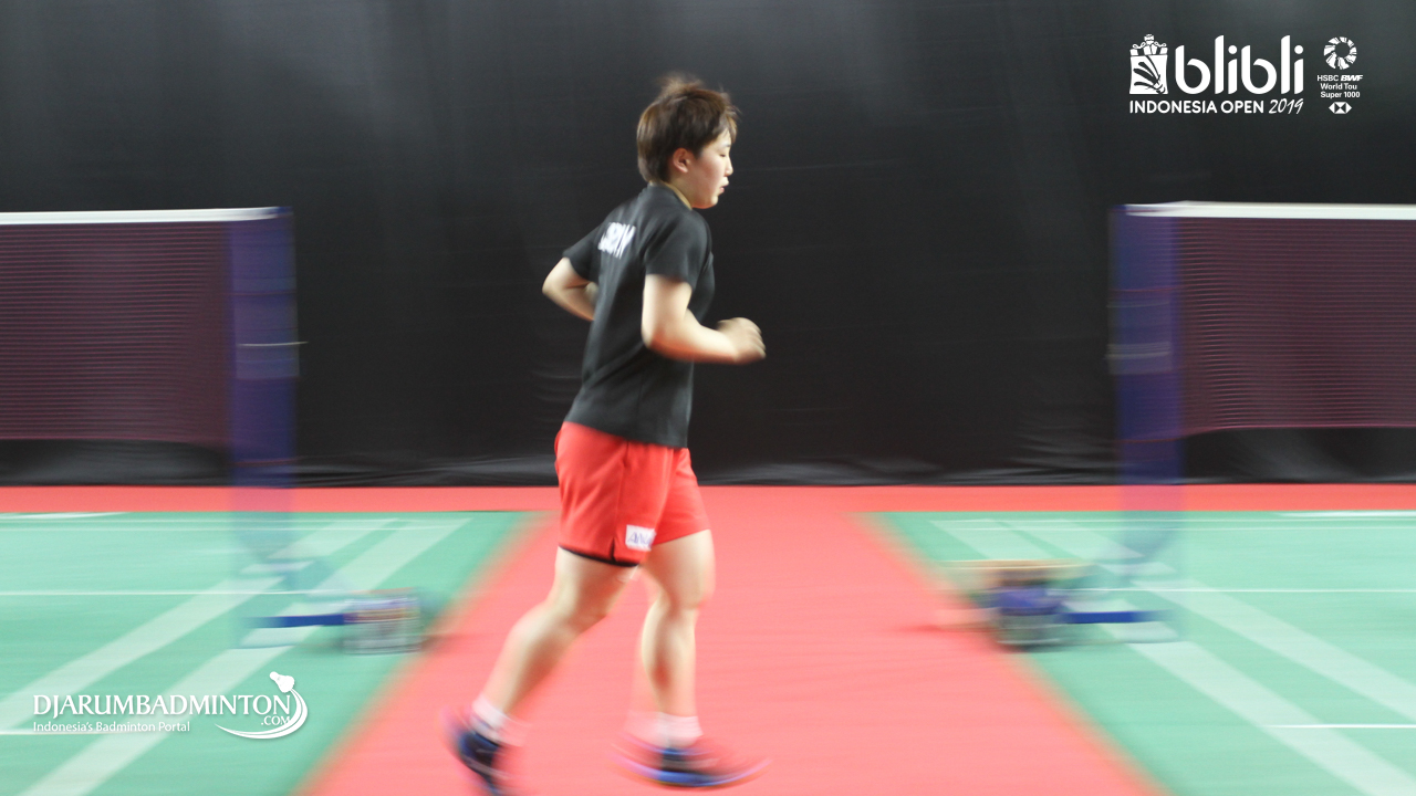 Akane Yamaguchi melakukan pemanasan di Warming Up Hall