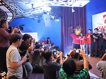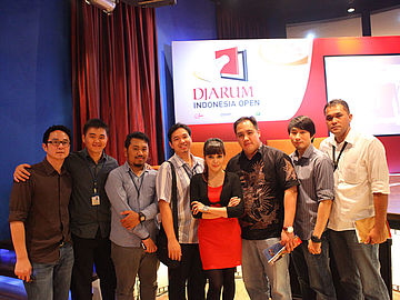 Wartawan memburu foto bersama yang dihadiri oleh atlet, PBSI dan pihak Djarum