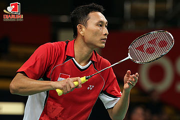 Pemain unggulan asal Denmark, Peter Hoeg Gade menyaksikan pertandingan babak kualifikasi pertama Djarum Indonesia Open 2012.