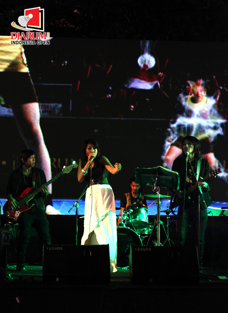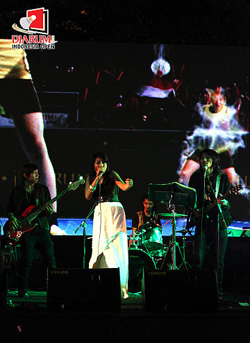 Pengunjung disuguhkan aksi band memeriahkan perhelatan Djarum Indonesia Open 2012.
