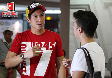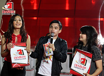 Artis Indonesia, Mario Lawalata ketika tengah memberikan sambutan di depan booth miliknya di Celebrity Bazaar, Djarum Indonesia Open 2012.