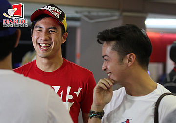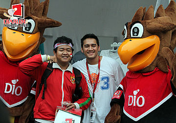 VJ Daniel (kiri) tengah berbicang dengan Dave Hendrik ketika menghadiri perhelatan Djarum Indonesia Open 2012.