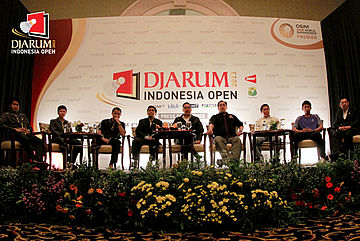 Para narasumber saat pelaksanaan press conference Djarum Indonesia Open Super Series Premier 2013.