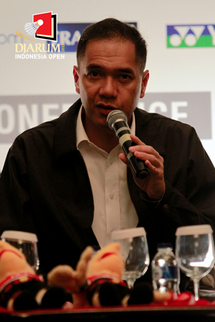 Rexy Mainaky saat menjawab pertanyaan dari rekan media.