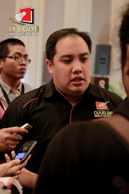 Roland Halim perwakilan PT Djarum, saat menjawab pertanyaan rekan media.