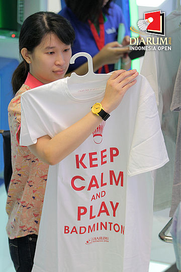 Salah satu pengunjung terlihat sedang memilih official merchandise Djarum Indonesia Open Super Series Premier 2013.