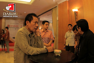 Sutiyoso (kiri) saat bersantai di luar ruang Gala Dinner Djarum Indonesia Open Super Series Premier 2013.