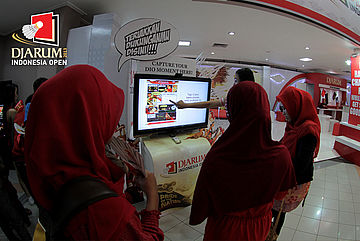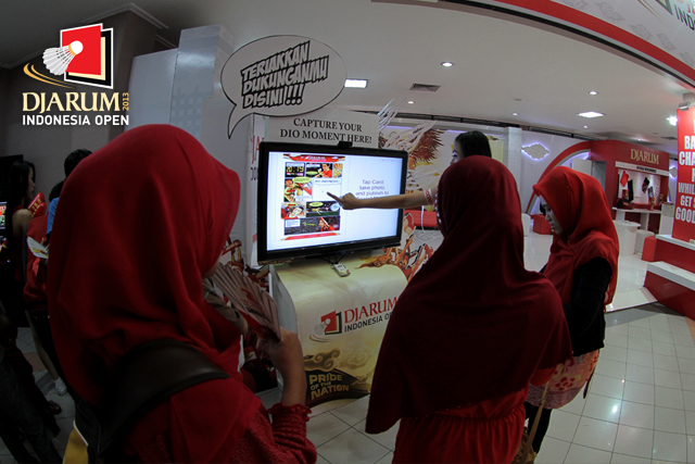 Salah satu peserta "Teriakkan Dukunganmu" berpose di depan booth PB Djarum.