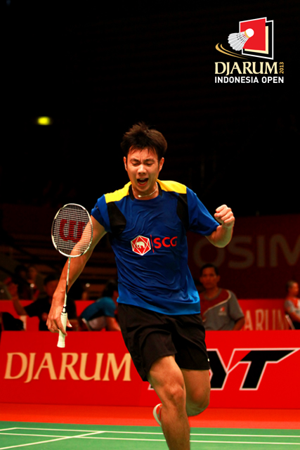 Ekspresi Boonsak Ponsana (Thailand) setelah berhasil mengalahkan Sho Sasaki (Jepang).