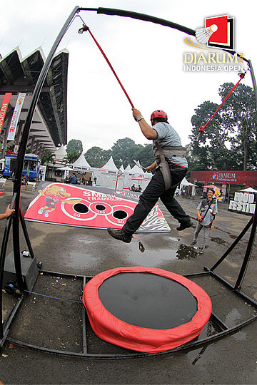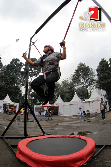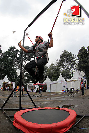 Seorang pengunjung terlihat sedang memainkan smash trampolin.
