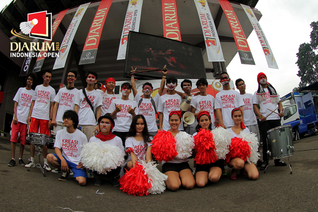 Salah satu peserta "Teriakkan Dukunganmu" berpose di depan booth PB Djarum.