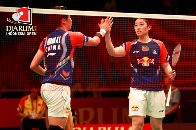 Wang Xiaoli/Yu Yang (China) setelahh berhasil memenangkan pertandingan atas Anneke Feinya Agustin/Della Destiara Haris (Indonesia).