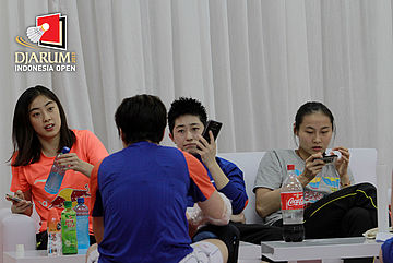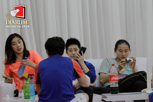 Empat pemain China terlihat sedang bersantai di player lounge.