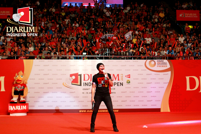 Anji saat tampil menghibur pengunjung yang memadati Istora Senyan.