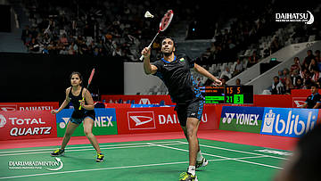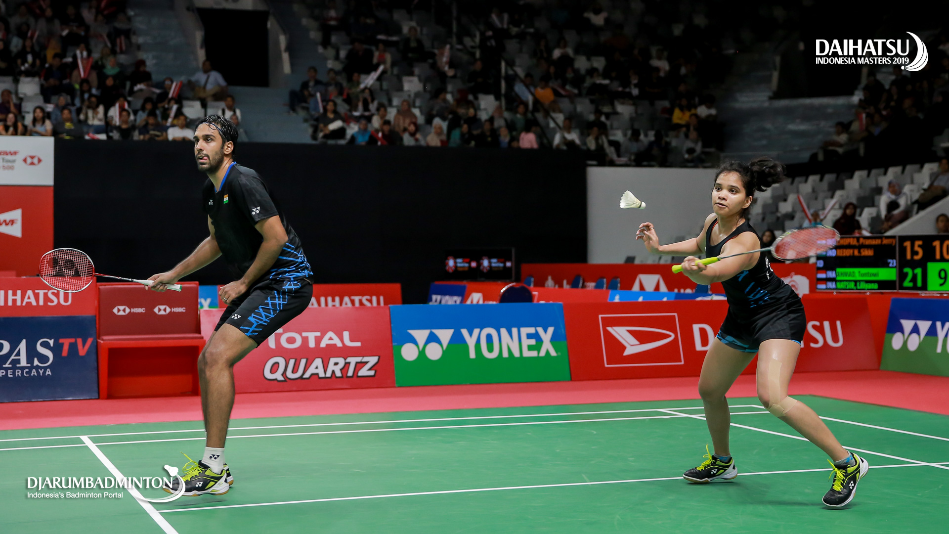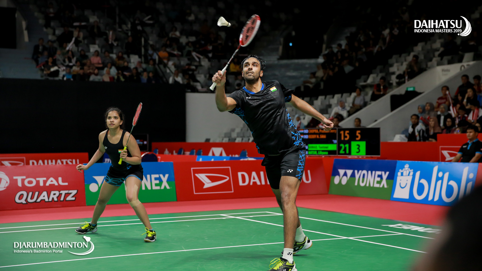 Pranaav Jerry CHOPRA/REDDY N. Sikki (India) bersiap menyambut shuttlecock