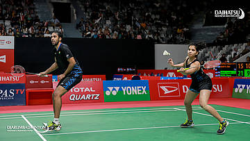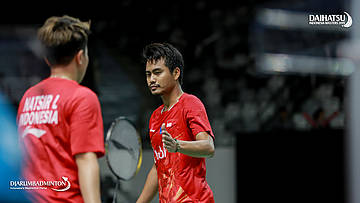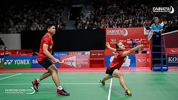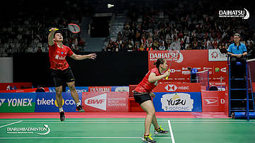 Praveen JORDAN/Melati Daeva OKTAVIANTI (Indonesia) mengembalikan serangan