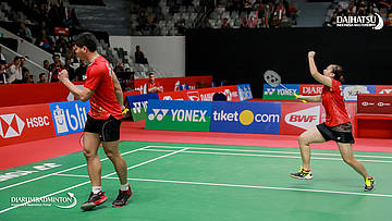 Praveen JORDAN/Melati Daeva OKTAVIANTI (Indonesia) menyambar shuttlecock