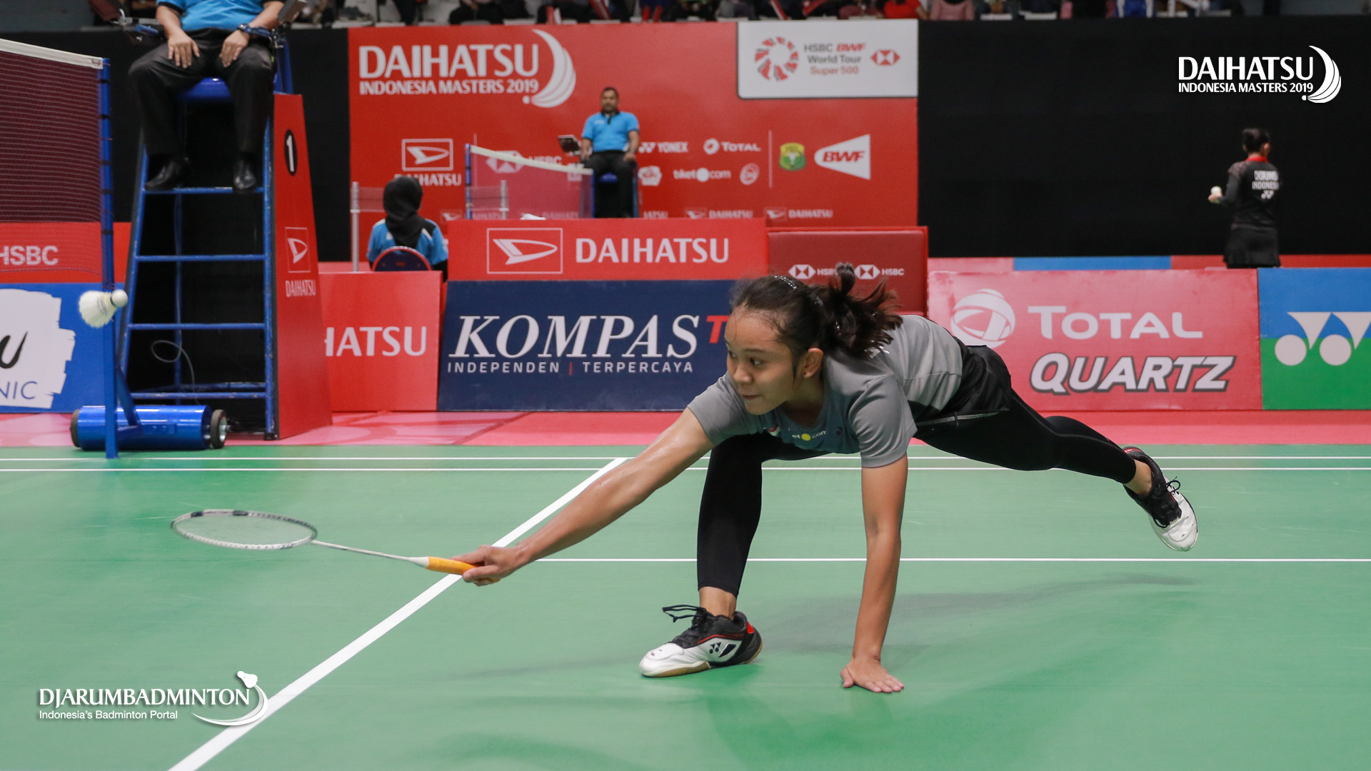 Dinar Dyah AYUSTINE (Indonesia) berusaha mengembalikan shuttlecock