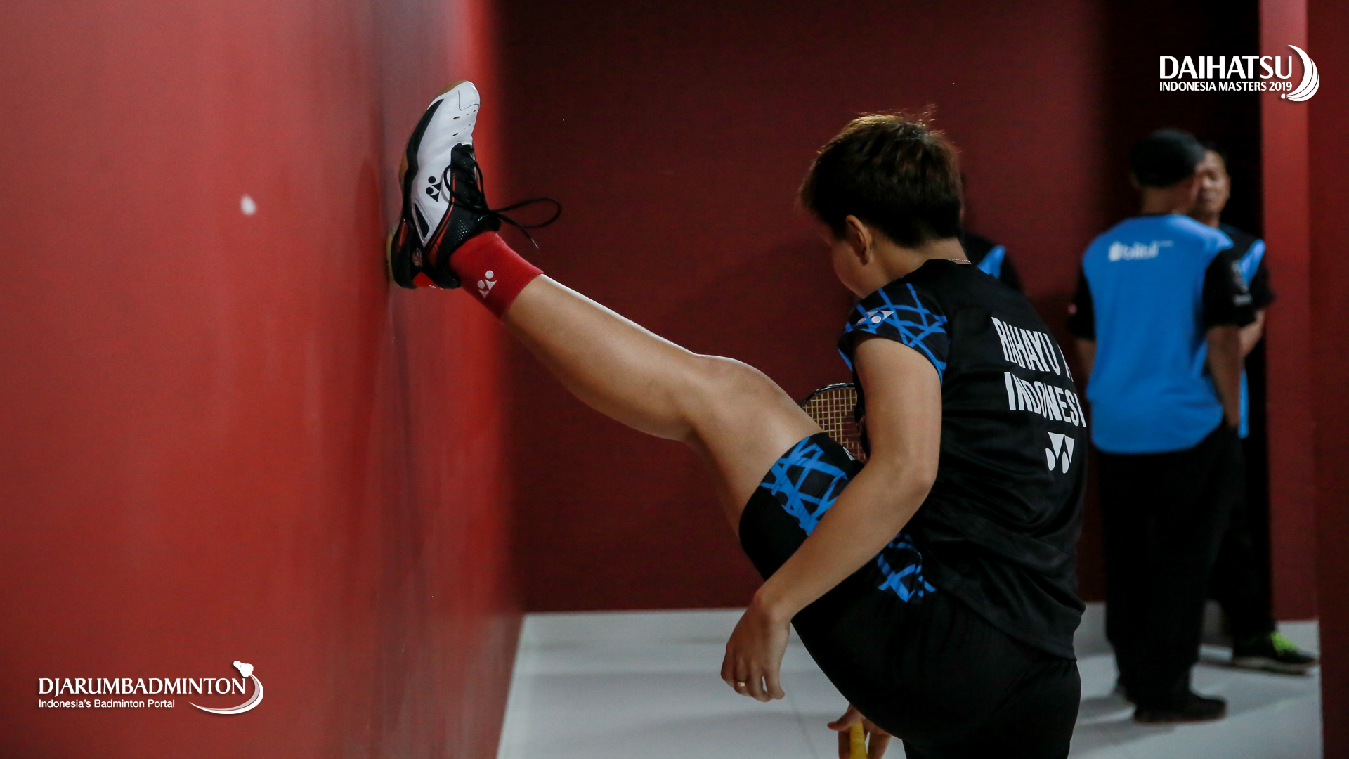 Apriyani RAHAYU (Indonesia) melakukan peregangan