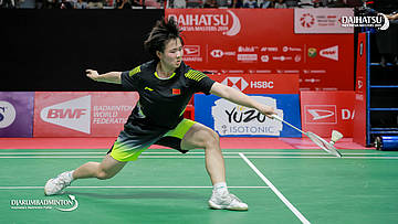 CHEN Yufei (Tiongkok) berusaha melakukan pertahanan