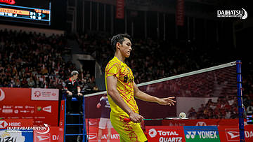 Jonatan CHRISTIE (Indonesia) bersiap melepaskan serangan