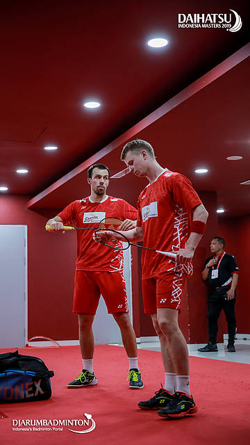 Kim ASTRUP/Anders Skaarup RASMUSSEN (Denmark) bersiap sebelum memasuki arena pertandingan