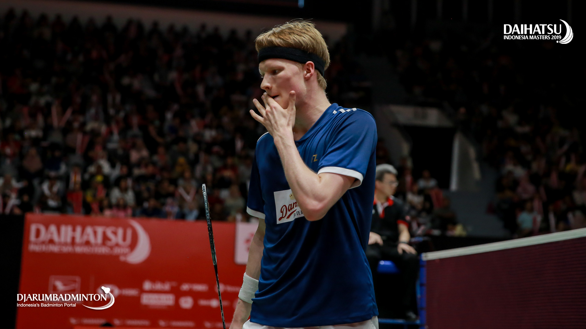 Anders ANTONSEN (Denmark) bersiap melepaskan serangan