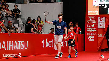 Kento Momota (Japan) saat memasuki arena pertandingan
