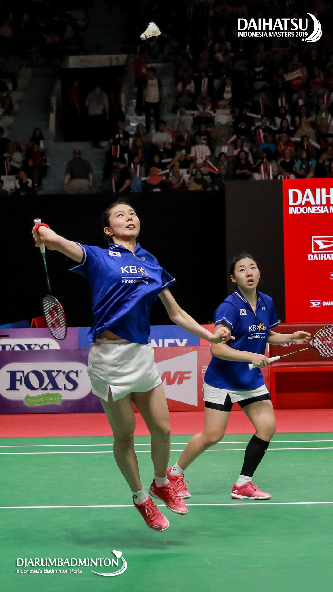 Kim So Yeong/Kong Hee Yong (Korea) bersiap mengembalikan serangan