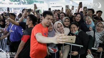 Hendra SETIAWAN (Indonesia) berfoto bersama badminton lover