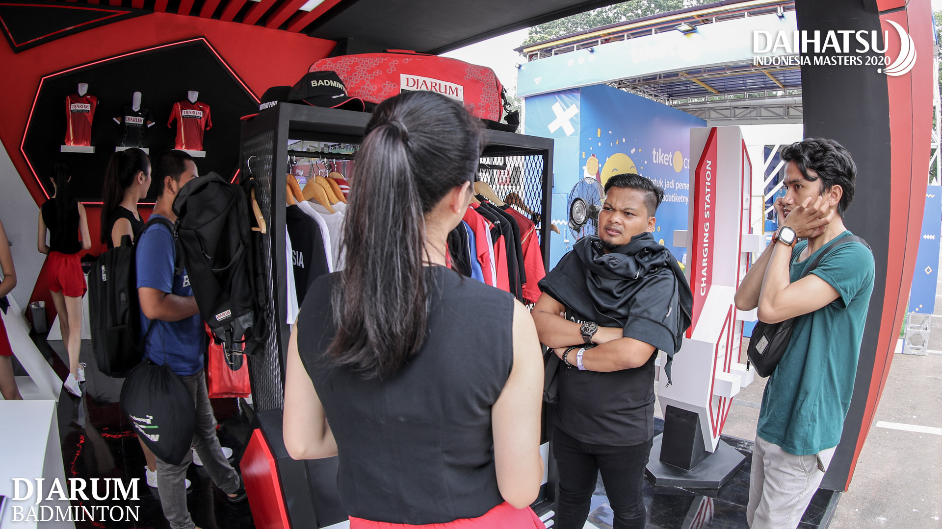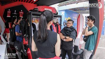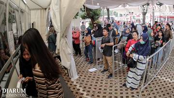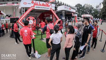 Beberapa pengunjung saat memili merchandise di booth PB. Djarum