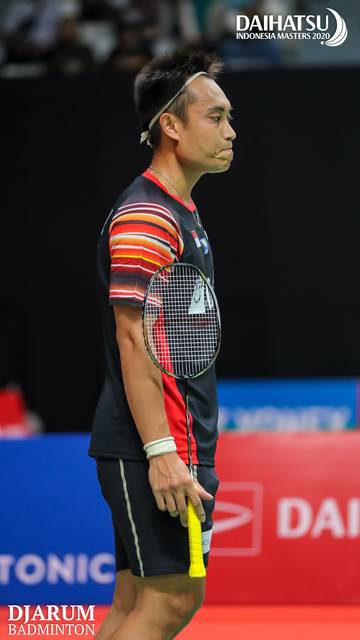 Takuro HOKI (Japan) meminta mengganti shuttlecock