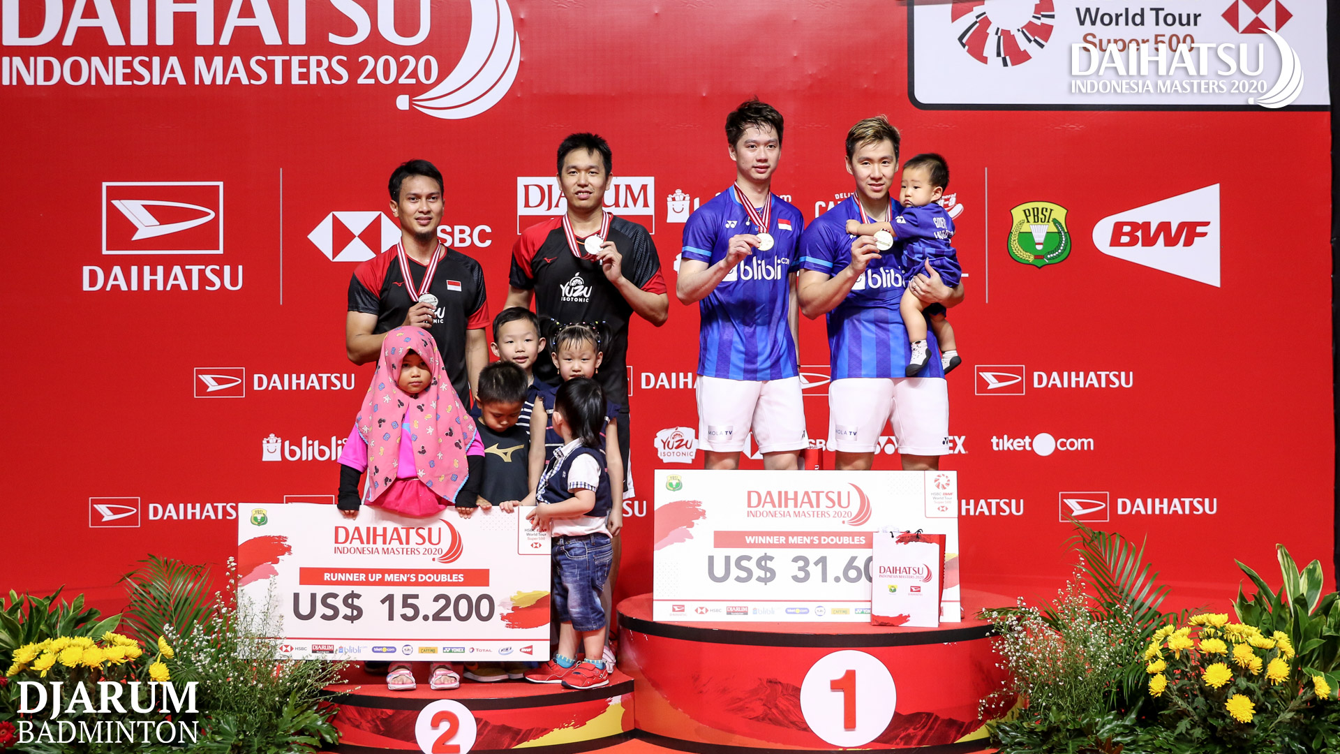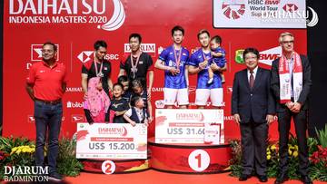 Pemberian Medali dan Hadiah kepada Runner Up dan Juara Ganda Putra Daihatsu Indonesia Masters 2020