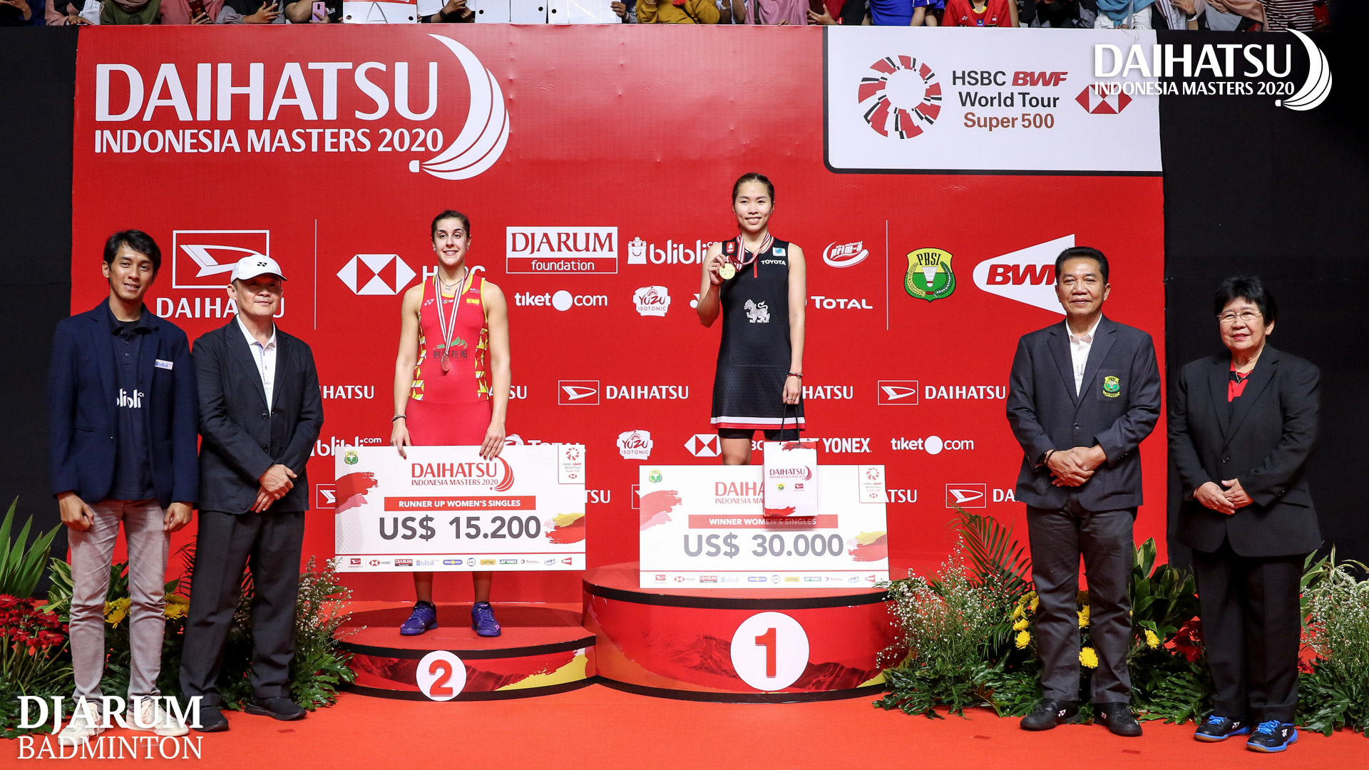 Pemberian Medali dan Hadiah kepada Runner Up dan Juara Tunggal Putri Daihatsu Indonesia Masters 2020