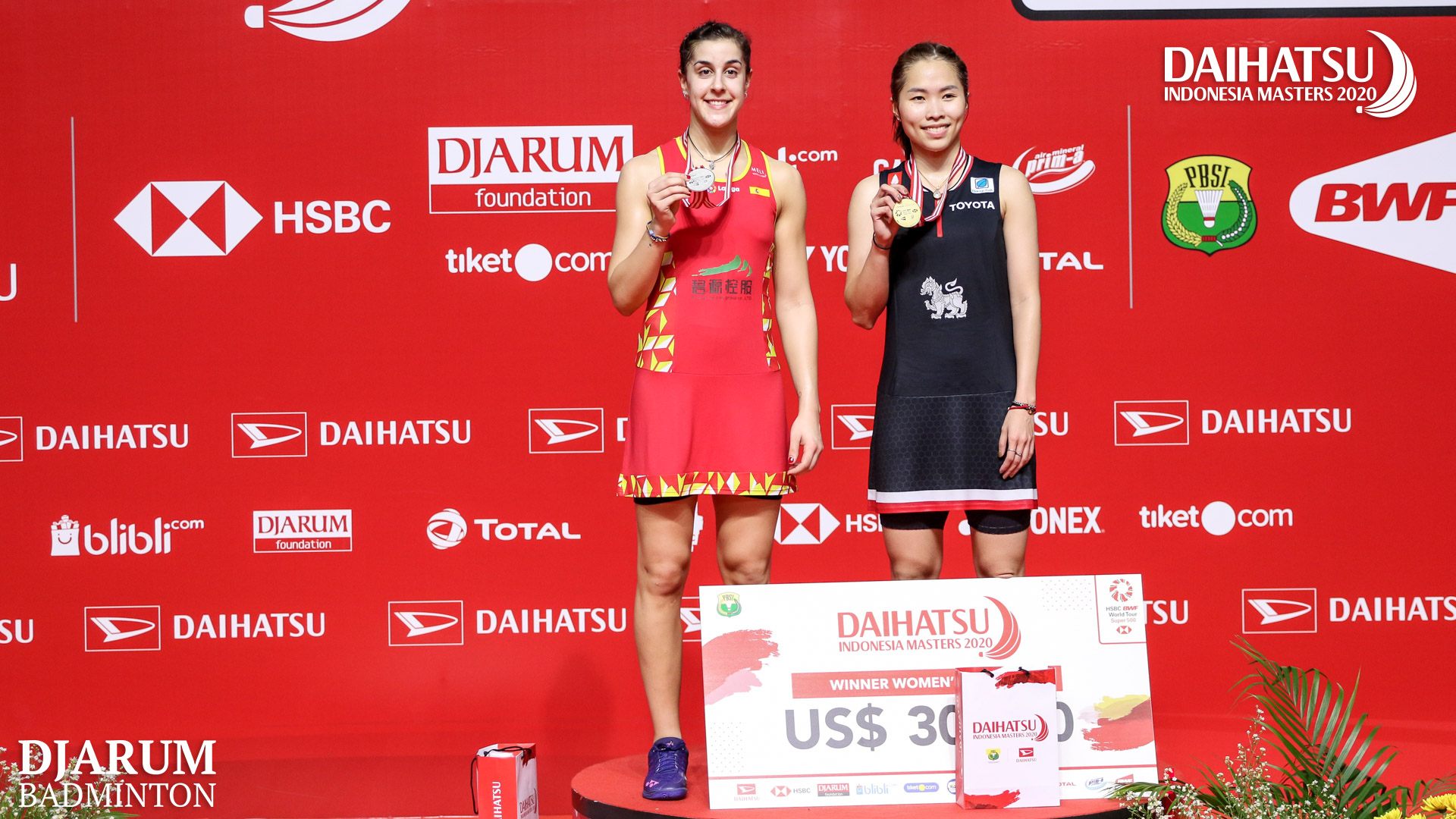 Podium Runner Up Carolina MARIN (Spain) dan Ratchanok INTANON (Thailand) Juara Tunggal Putri Daihatsu Indonesia Masters 2020